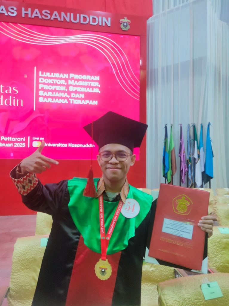 KAREBAMAKASSAR.COM — Universitas Hasanuddin kembali mencetak lulusan terbaik dalam penyelenggaraan wisuda Program Sarjana, Vokasi, Magister, Doktor, Spesialis dan Profesi untuk Periode Wisuda Februari Tahun Akademik 2025/2026, adalah Achmad Kautsar Baharuddin yang merupakan wisudawan terbaik tingkat universitas untuk kelompok eksakta, IPK 3.95 dengan masa studi 3 tahun 4 bulan, dari Prodi Agroteknologi, Fakultas Pertanian.