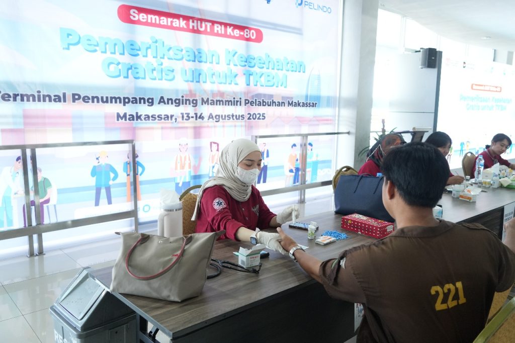 KAREBAMAKASSAR.COM — 13 Agustus 2025. PT Pelabuhan Indonesia (Persero) Regional 4 bersama Pelindo Regional 4 Makassar menyelenggarakan pemeriksaan kesehatan gratis bagi Tenaga Kerja Bongkar Muat (TKBM) Pelabuhan Makassar. Kegiatan yang digelar dalam rangka memeriahkan HUT Kemerdekaan RI ke-80 ini berlangsung selama dua hari, Rabu dan Kamis (13–14 Agustus 2025) di Terminal Penumpang Pelabuhan Makassar dengan melibatkan tim medis dan diikuti total 500 orang TKBM.
