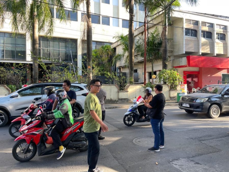 Tak hanya bendera, para personel juga mengingatkan para pengendara untuk selalu mematuhi peraturan lalu lintas demi keamanan bersama.