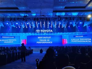 Kalla Toyota Juanda dan Martadinata meraih penghargaan best outlet trade-in performance di Toyota Dealer Convention 2024