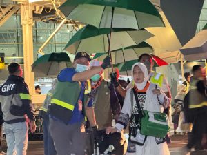 KAREBAMAKASSAR.COM – Setelah melakukan serangkaian kegiatan ibadah Haji, 393 jamaah haji tiba di Bandara Sultan Hasanuddin malam ini pada pukul 21.45 WITA. Para jamaah diterbangkan dari Jeddah ke Makassar dengan pesawat Garuda Indonesia GA1401. Satu per satu jamaah haji turun