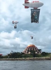 MAKASSAR, KAREBAMAKASSAR.COM — Masyarakat dikejutkan dengan balon udara yang bertuliskan Honda melintasi dan menghiasi langit Kota Makassar. Mereka yang melihat langsung balon udara tersebut merekam dan menyebarkannya di media sosial. Ada banyak pertanyaan yang muncul terkait keberadaan balon udara Honda