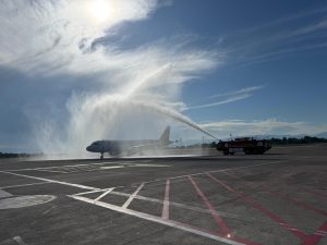KAREBAMAKASSAR.COM – Pilihan maskapai menuju Ambon dan Jakarta dari Makassar kini semakin beragam. Pagi ini (10/6) Manajemen Bandara Internasional Sultan Hasanuddin menyambut kedatangan pesawat Pelita Air dengan water salute yang dilakukan oleh tim Airport Rescue and Fire Fighting (ARRF). Pelita